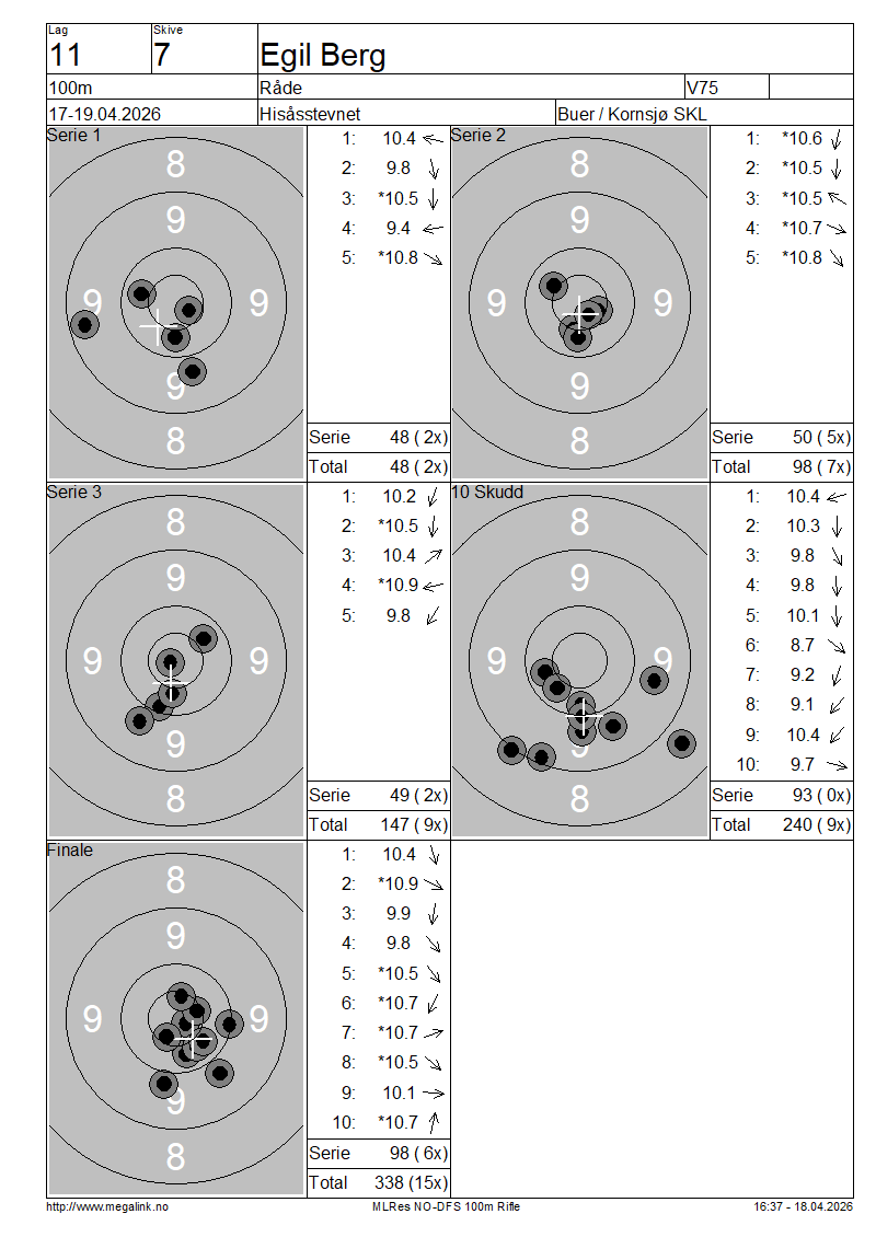 | 15 Skudd | 30 | 25 Skudd | 106 | 35 Skudd | 106 | ||||||||||||||||||||||||||||||||||||||||||
