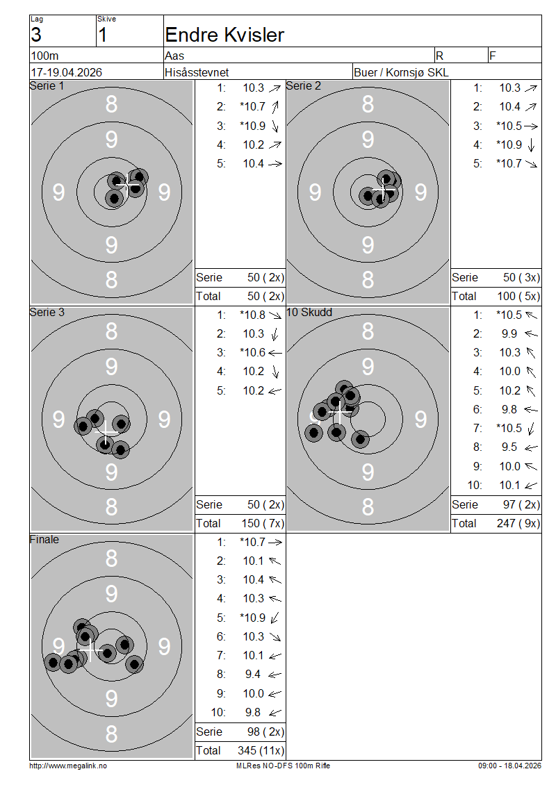 | 15 Skudd | 150 | 25 Skudd | 247 | 35 Skudd | 345 | ||||||||||||||||||||||||||||||||||||||||||