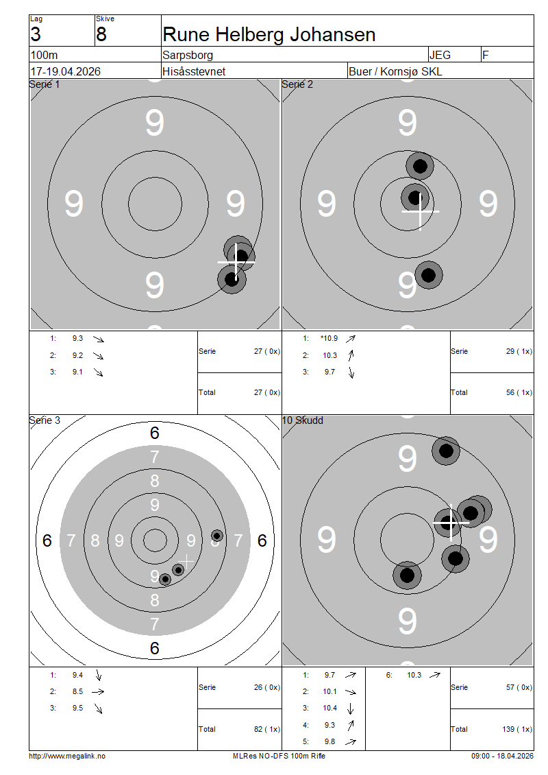 | 15 Skudd | 82 | 25 Skudd | 139 | 35 Skudd | 139 | ||||||||||||||||||||||||||||||||||||||||||