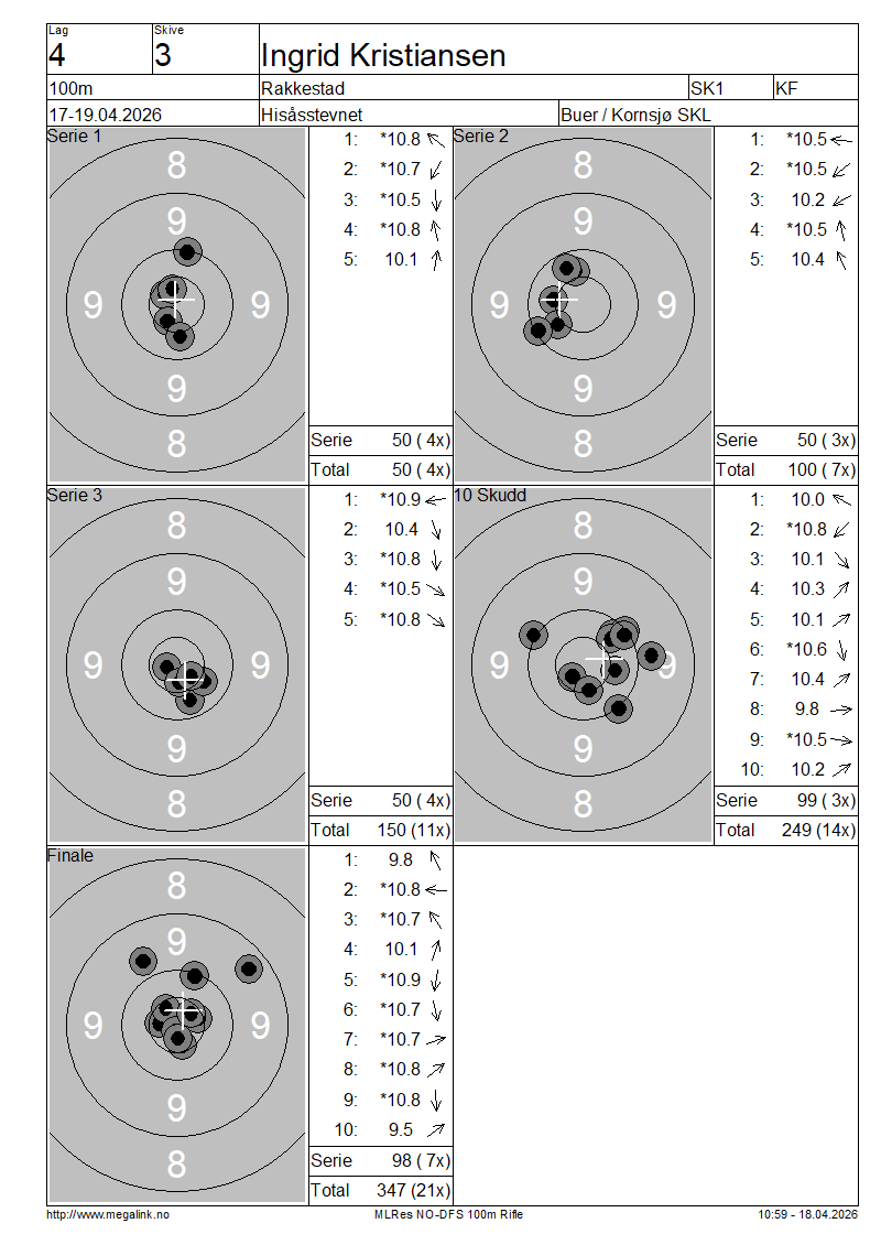 Resultater lag 4 100m