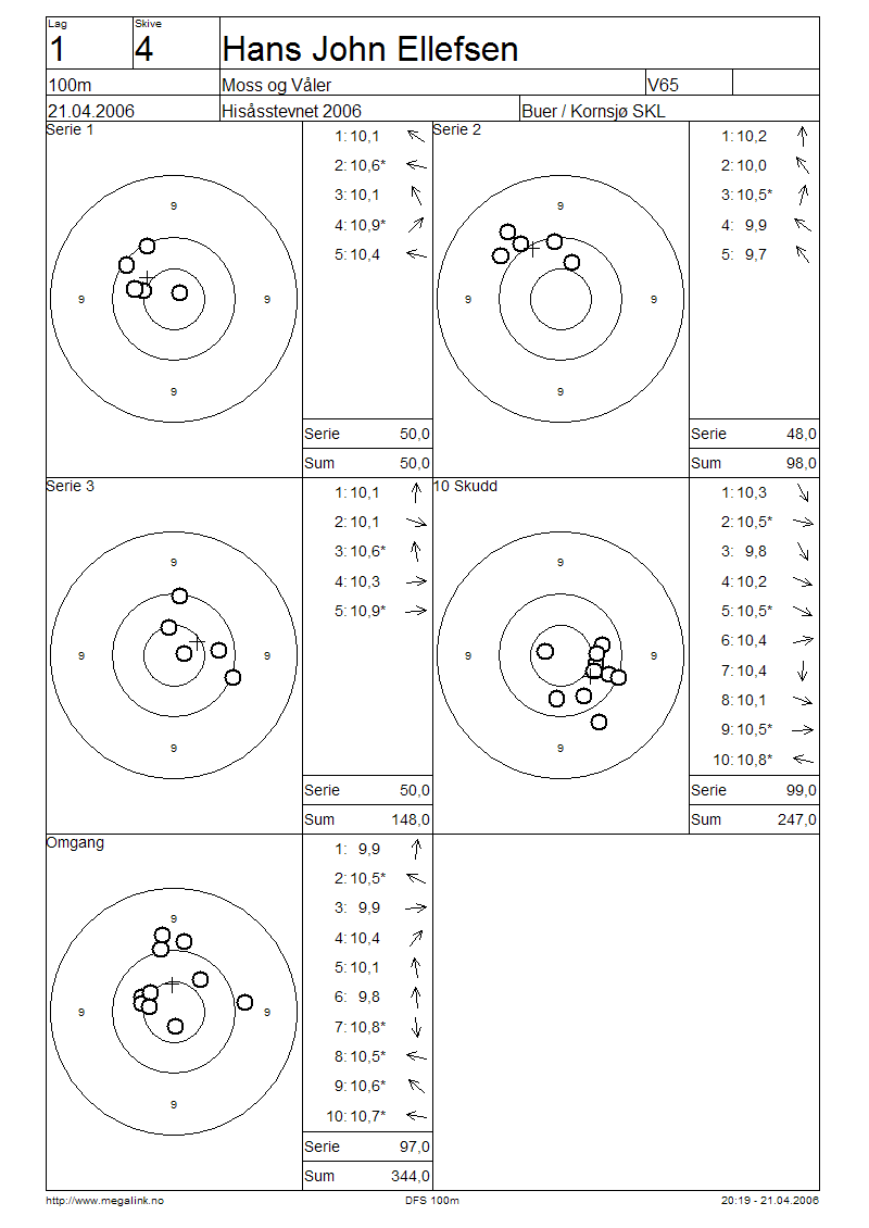 | 15 Skudd | 148 | 25 Skudd | 247 | 35 Skudd | 344 | |||||||||||||||||||||||||||||||||||||||||||