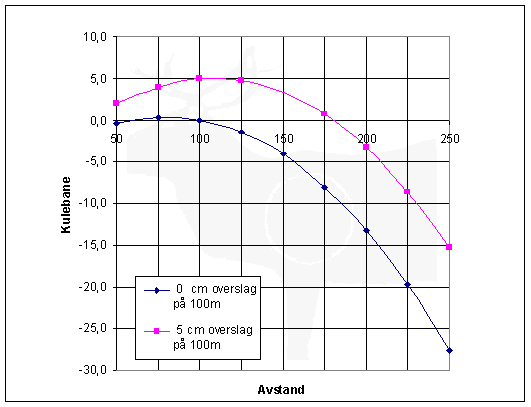 treffpunktet bli ca. 20. cm under siktepunktet på 225m. Ikke for å
